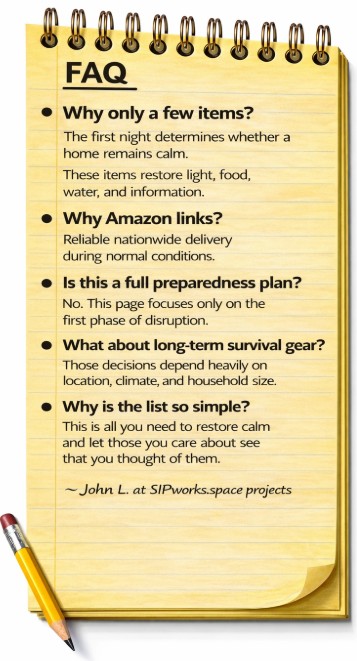 Surviving Day One with Light, Food, Water, Warmth and Information